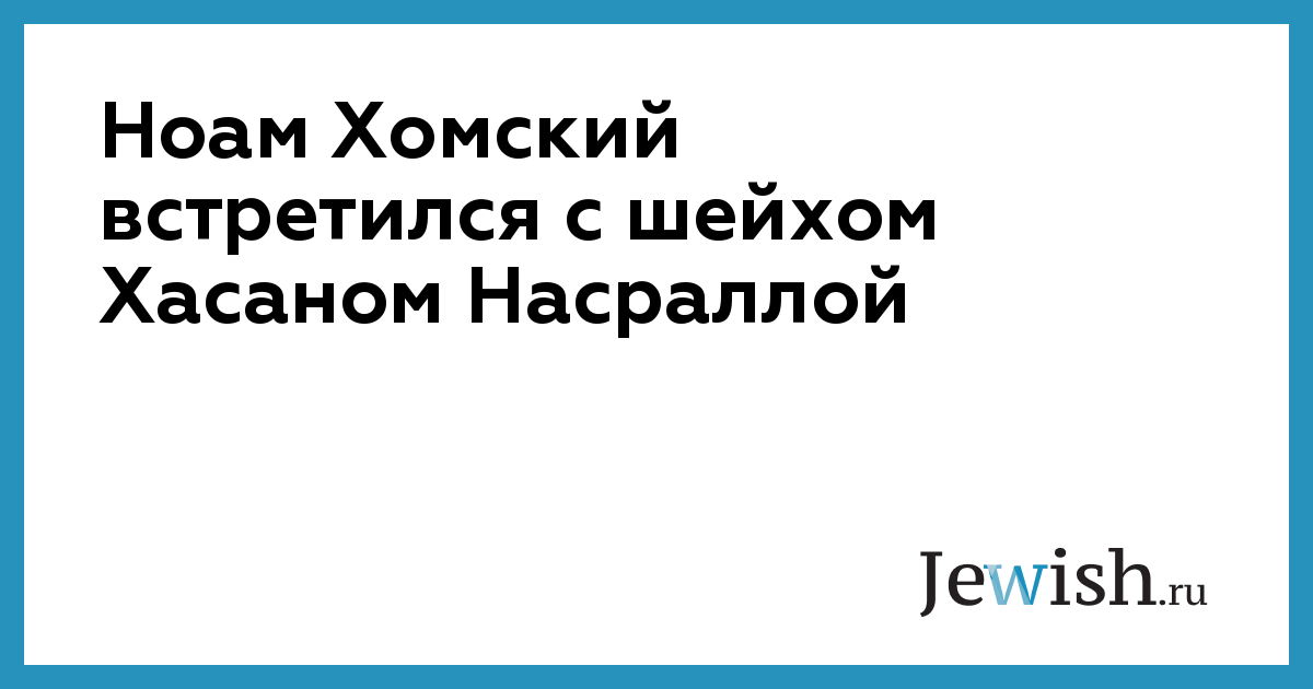 Американский лингвист и идейный борец с сионизмом д-р Ноам Хомский в начале нынешней недели встретился в Бейруте с шейхом Хасаном Насраллой. В ходе беседы с главарем «Хизбаллы» Хомский заявил, что существование этой террористической группировки «легитимно».