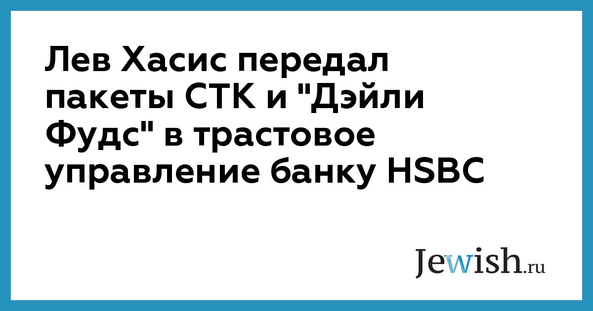Лев Хасис передал пакеты СТК и "Дэйли Фудс" в трастовое управление банку HSBC
