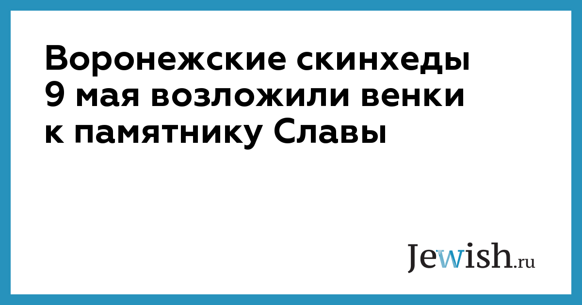 Утром 12 мая в редакцию «МОЁ!» по электронной почте пришло письмо. «9 мая около 12 часов дня воронежские националисты возлагали венки к памятнику Славы», — написано в послании. К письму были присоединены несколько фотографий. На снимках крепкие бритоголовые парни несут венки к мемориалу, позируют у Вечного огня. К венкам прикреплены таблички с надписями «Павшим воинам от воронежских скинхедов 14» и «Русским солдатам от национал-патриотического фронта».