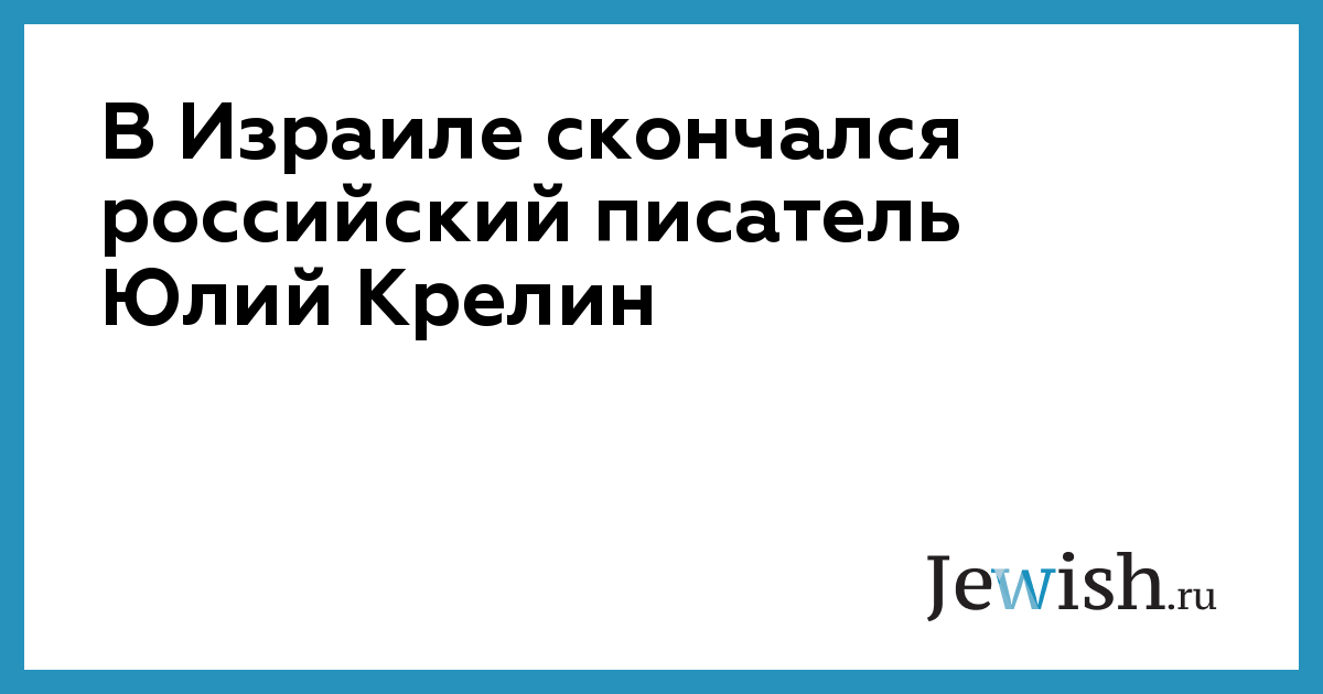 В Израиле в возрасте 77 лет скончался известный российский писатель, кандидат медицинских наук Юлий Крелин, сообщил радиостанции «Эхо Москвы» близкий друг писателя актер Михаил Козаков.