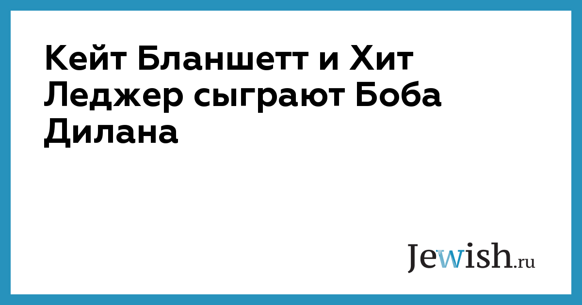 Кейт Бланшетт и Хит Леджер сыграют Боба Дилана