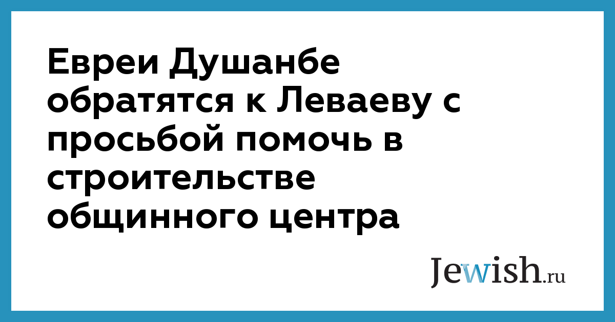 Во время недавнего визита главного раввина Центральной Азии Аббы Довида Гуревича в Душанбе, на встрече с лидерами городской еврейской общины было принято решение обратиться к президенту Международного благотворительного фонда "Ор Авнер", президенту ФЕО СНГ и Конгресса бухарских евреев Льву Леваеву и другим еврейским меценатам с просьбой оказать финансовую поддержку инициативе строительства в столице Таджикистана еврейского общинного центра.