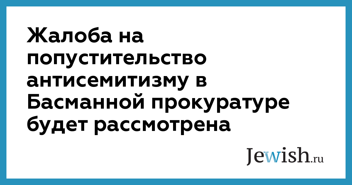 Жалоба на попустительство антисемитизму в Басманной прокуратуре будет рассмотрена