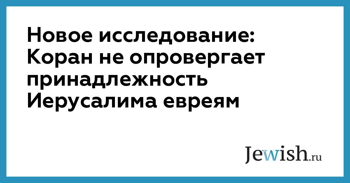 Новое исследование: Коран не опровергает принадлежность Иерусалима евреям