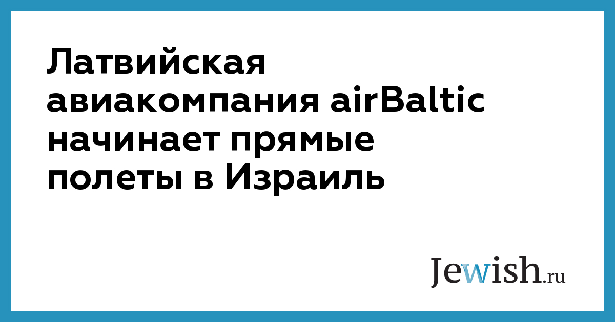 5 июня латвийская авиакомпания airBaltic начинает прямые полеты в Израиль. Этот маршрут станет 31-м прямым рейсом airBaltic из Риги, сообщила порталу Delfi вице-президент предприятия по корпоративным коммуникациям Вия Дзерве.