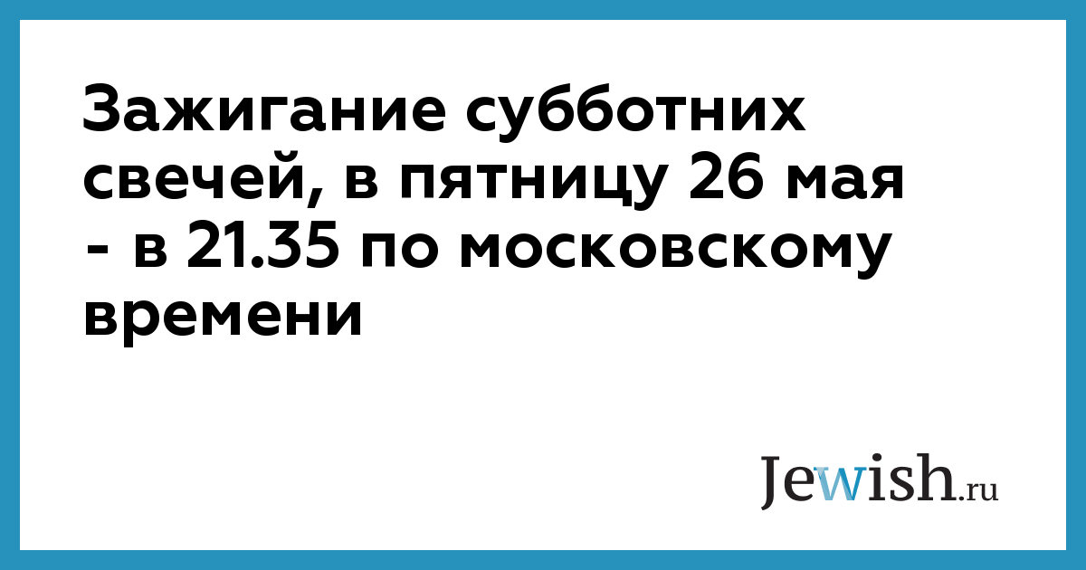 Зажигание субботних свечей, в пятницу 26 мая — в 21.35 по московскому времени