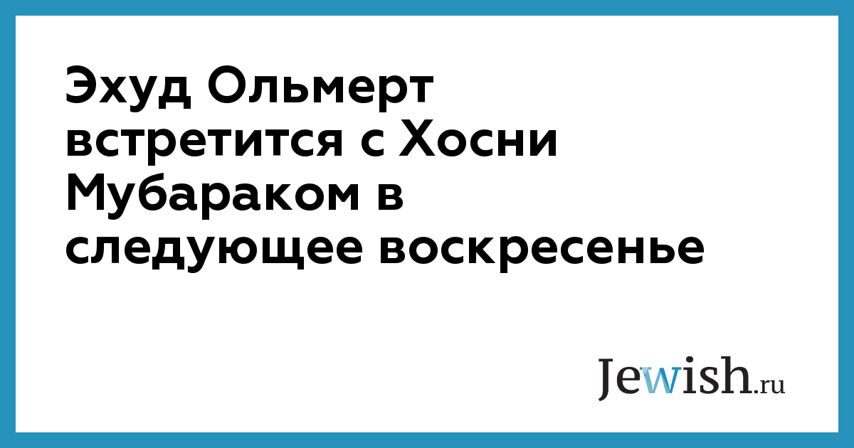 Эхуд Ольмерт встретится с Хосни Мубараком в следующее воскресенье