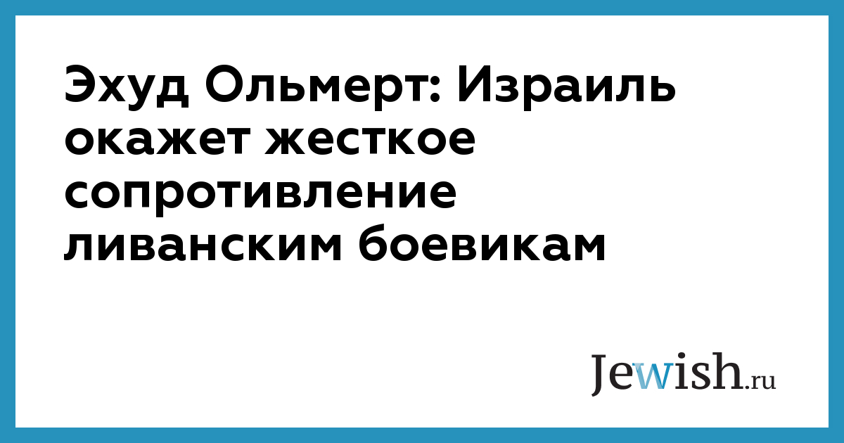 Эхуд Ольмерт: Израиль окажет жесткое сопротивление ливанским боевикам