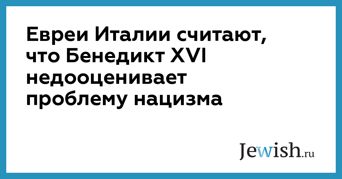 Представители еврейской общины Италии полагают, что папа Римский Бенедикт XVI недооценивает проблему нацизма, и не понимают, почему он во время посещения бывшего концлагеря Освенцим не упомянул об антисемитизме.
