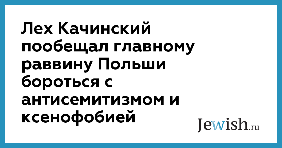Лех Качинский пообещал главному раввину Польши бороться с антисемитизмом и ксенофобией