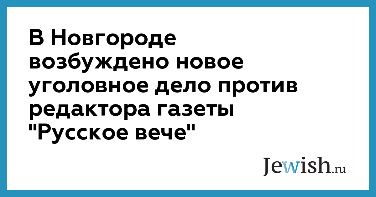 Прокуратура Великого Новгорода возбудила новое уголовное дело в отношении редактора газеты «Русское вече» Павла Иванова, ранее признанного виновным в разжигании национальной розни, передает АНН.