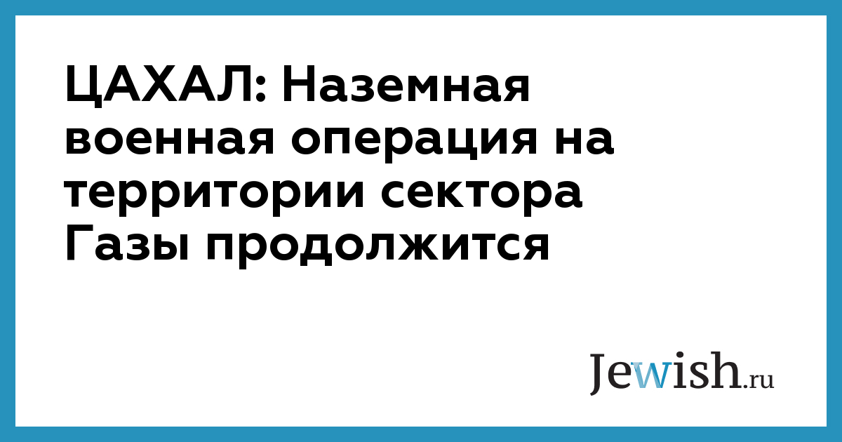 ЦАХАЛ: Наземная военная операция на территории сектора Газы продолжится