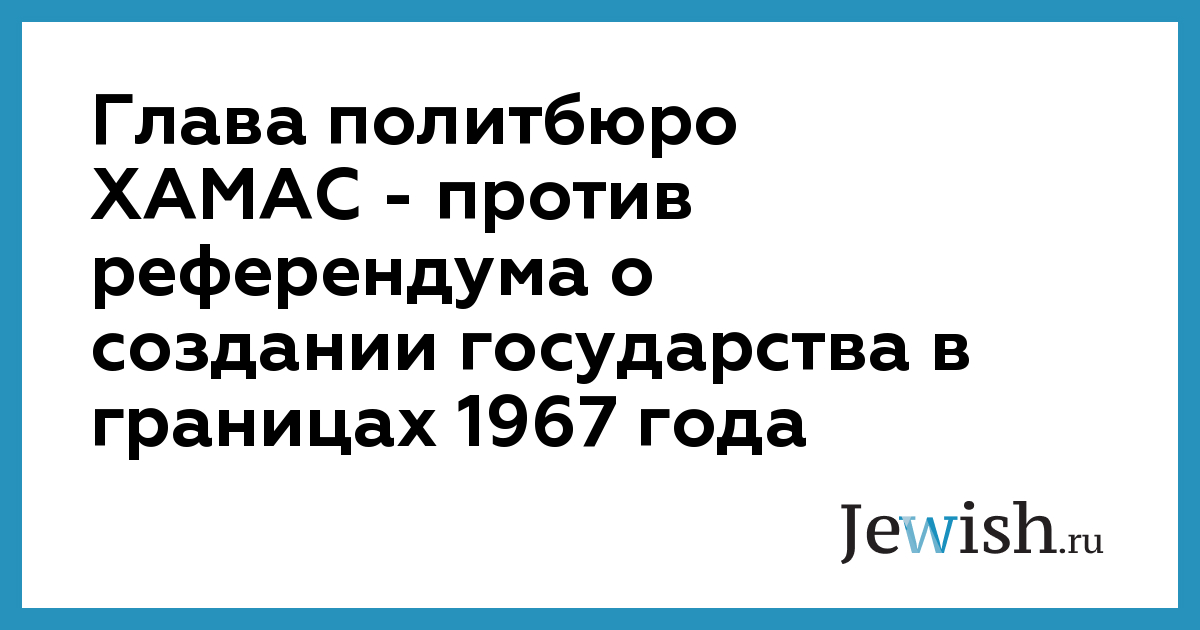 Глава политбюро ХАМАС — против референдума о создании государства в границах 1967 года
