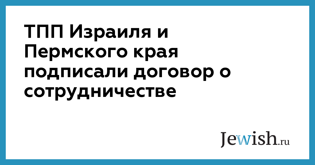 ТПП Израиля и Пермского края подписали договор о сотрудничестве