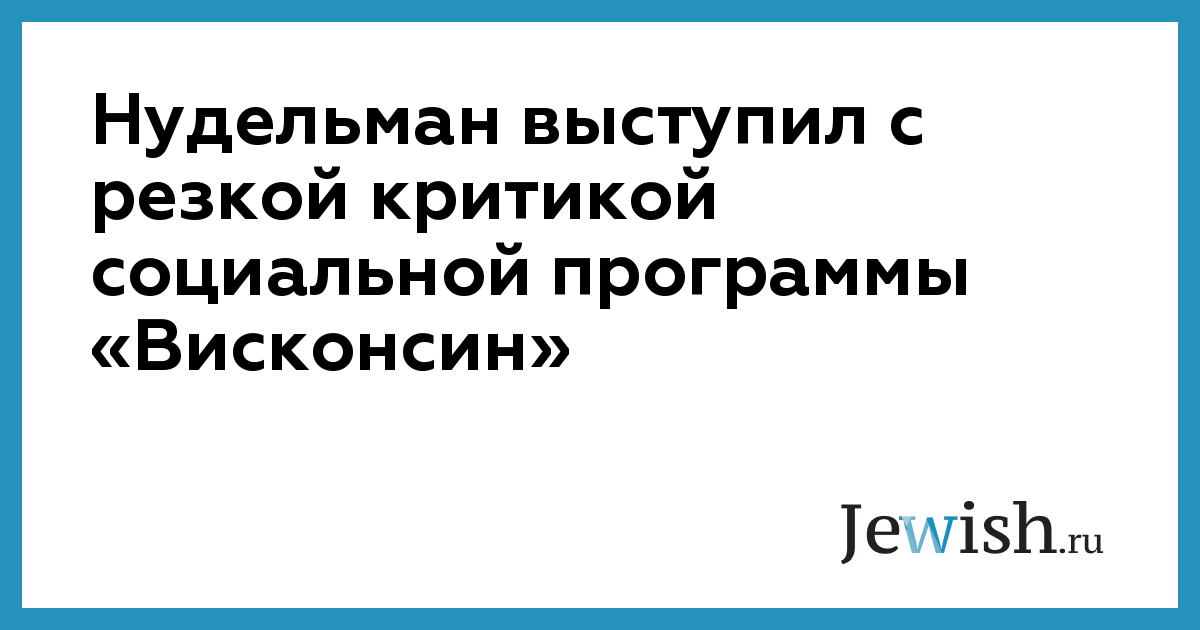 Нудельман выступил с резкой критикой социальной программы «Висконсин»