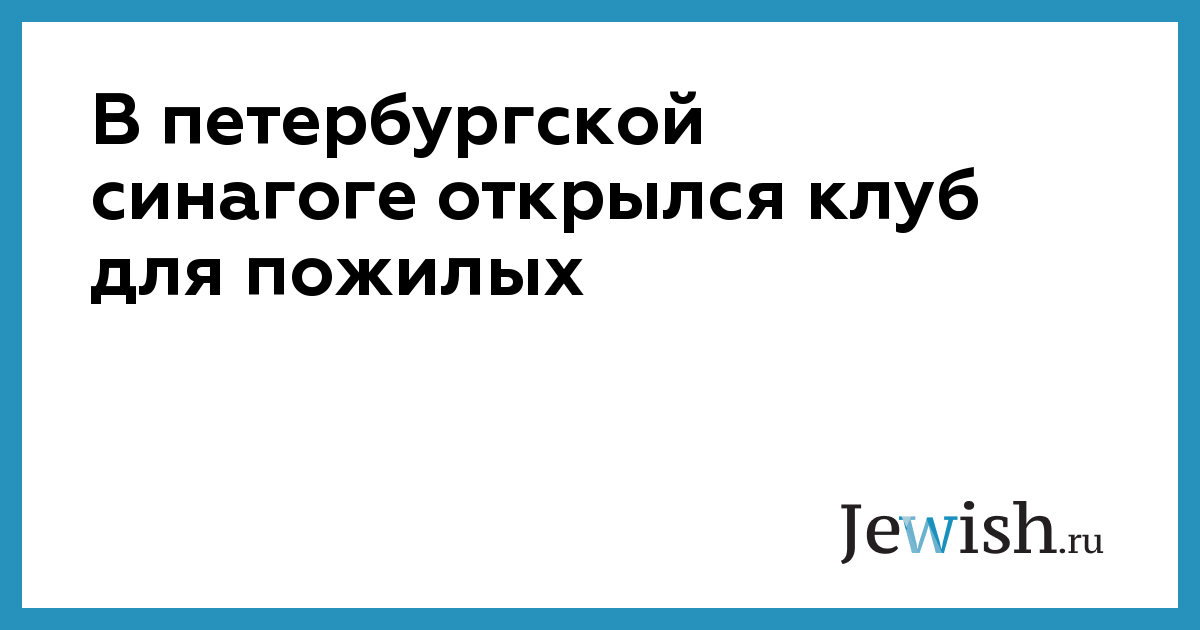 Некоторое время назад на базе благотворительного центра Большой хоральной синагоги в Петербурге открылся «Досуговый центр для людей зрелого возраста». Такое дипломатичное название дали ему организаторы, но на самом деле центр предназначен для тех, кому за 70.