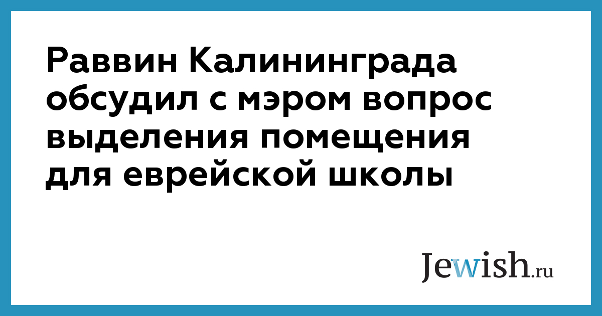 Раввин Калининграда обсудил с мэром вопрос выделения помещения для еврейской школы