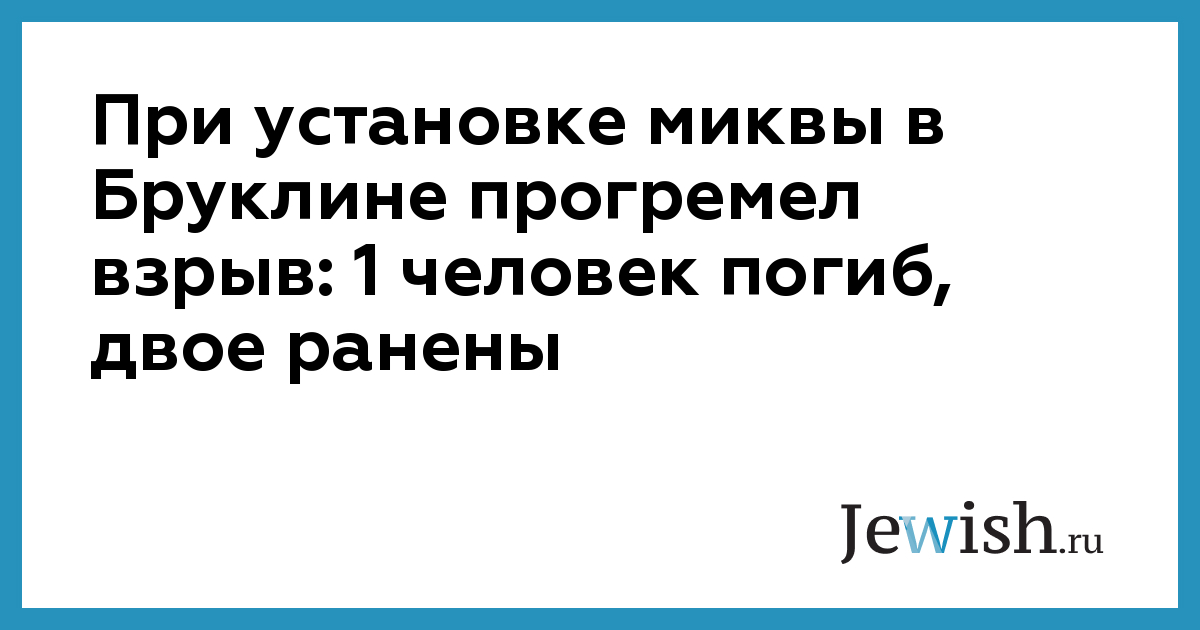 При установке миквы в Бруклине прогремел взрыв: 1 человек погиб, двое ранены