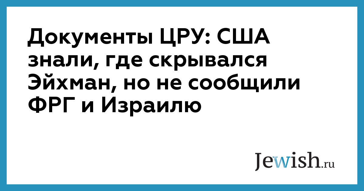 Властям США с 1958 года было известно место проживания нацистского преступника Адольфа Эйхмана, которого считают одним из организаторов массового истребления еврейского народа в годы Второй мировой войны.