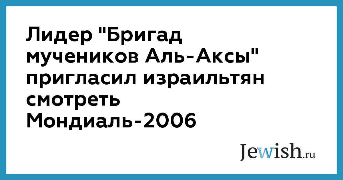 Лидер "Бригад мучеников Аль-Аксы" пригласил израильтян смотреть Мондиаль-2006