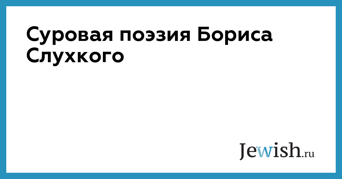 Борис Слуцкий вошел в нашу жизнь в 1957 году, хотя его стихи, конечно, были известны и раньше. Их тогда практически не печатали, и распространялись они на слух или в рукописных списках. Первые услышанные стихи Бориса Слуцкого, такие как "Евреи хлеба не сеют" и "Нас было семьдесят тысяч пленных", поражали своей истинно мужской жесткостью и прямотой, точностью и весомостью звучания, совершенством монолитной строки с единственностью ее грозной гармонии. По воспоминаниям современников, внешний облик Бориса Слуцкого, полностью совпадал со стилистикой его стихов. Полувоенный френч, строгий и независимый вид — никаких улыбочек и заигрываний с аудиторией. Седые аккуратно подстриженные усы. Подчеркнутая офицерская выправка, усугубляемая прямой осанкой и твердой походкой. Лапидарные рубленые фразы с жесткими оценками, безжалостными даже к самому себе.