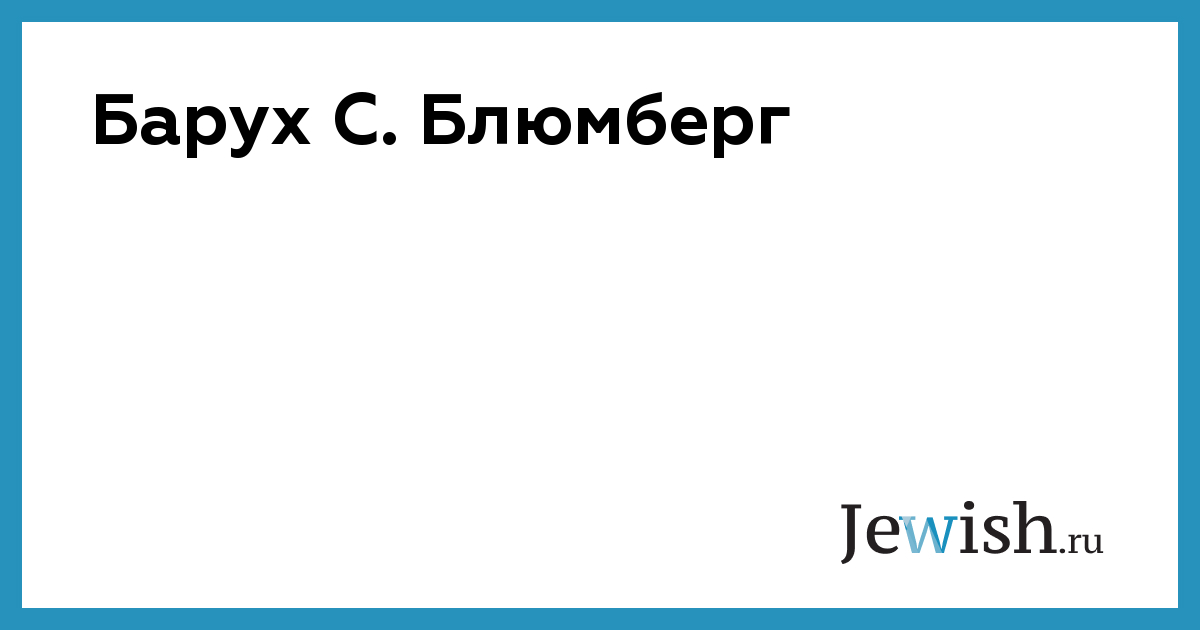 Барух С. Блюмберг о себе Я родился в Нью-Йорке в 1925 году в семье Мейера и Иды Блюмберг. Мои предки приехали в Америку из Европы в конце 19 века и возлагали большие надежды на свою новую страну. Свое начальное образование я получил в Иешиве Флэтбуша — местной еврейской школе, где помимо строгого светского образования изучал Тору в оригинале.