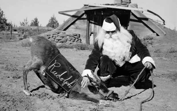 Светящийся нос ведёт Санту сквозь бурю...