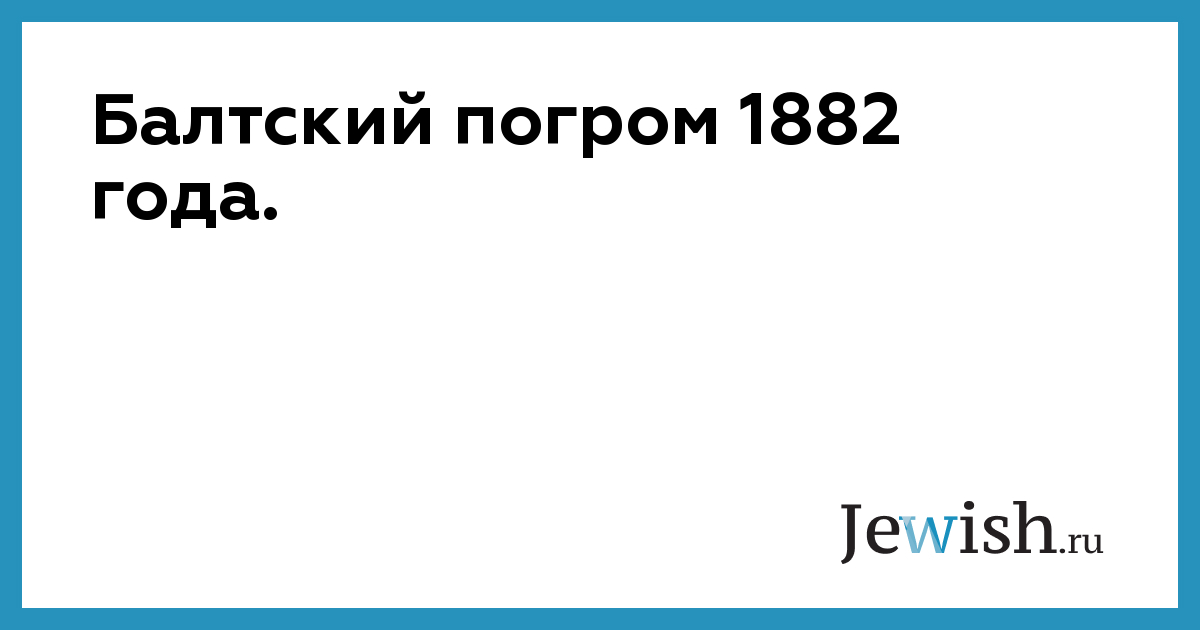 29 марта 1882 года на юге Российской империи произошел один из самых жестоких и кровавых еврейских погромов. При этом местные власти фактически содействовали организаторам бесчинств. Балтский погром стал особой страницей в черной летописи истории антисемитизма на Украине. После него особенно усилились эмиграционные настроения среди живших в черте оседлости евреев.Маленький южнорусский город Балта затерялся на пыльных дорогах где-то на границе между Одесской областью и Молдавией. Как и соседняя Одесса, он возник на отвоеванных у Османской империи территориях в самом конце XVIII века, когда в 1797 году, высочайшим указом польский город Еленск и турецкое поселение Балта были объединены в один населенный пункт. С тех пор Балта знаменита, главным образом, своей вино-водочной продукцией. До революции, как и в большинстве городов черты оседлости, здесь жило немало евреев. Черные времена настали в 1881-1882 годах, когда после того, как революционные демократы в Санкт-Петербурге убили царя Александра II, на престол взошел его сын Александр III, при котором вновь усилилось притеснение евреев. Ведь уже тогда их винили во всех происходивших в стране бедах.