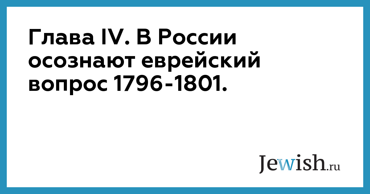 .) Перед Павлом стояла нелегкая задача. Бывшие земли Речи Посполитой, где жили эти евреи, свыше трех лет терзала война, и теперь там царили разруха и беспорядок. К России отошли районы, сильно отличавшиеся друг от друга: часть Белоруссии, Литвы, Украина и Курляндия, а также собственно польские области. Многие из этих пестрых в культурном отношении территорий некогда принадлежали Великому княжеству Литовскому. Несмотря на то, что население этих новых владений Российской империи получило гарантии свободы вероисповедания после 1772 г., евреи не упоминались ни в одном указе о присоединении новых земель. К тому времени уже прочно укоренился принцип, согласно которому все, не разрешенное евреям особыми постановлениями, было им запрещено. Поэтому представляется знаменательным, что их обошли вниманием в указах 1772 г. — тем более что правовую систему Великого княжества Литовского, в которой евреи рассматривались как особая категория населения, формально оставили в силе. Это привело к правовым разногласиям между христианами и евреями, которые, впрочем, обратили на себя внимание центральных властей только в начале царствования преемника Павла I, императора Александра I. Другой причиной, заставившей правительство заинтересоваться евреями, стало обострение конфликта между миснагдим и их противниками — хасидами.