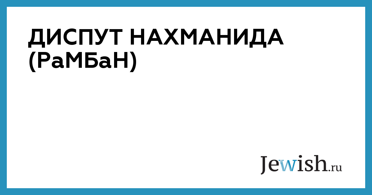 «Диспут Нахманида» — это типичный образец диспутов, которые в Средние века велись по инициативе церкви с представителями иудаизма. Официально диспут происходил между выкрестом из евреев, доминиканским монахом «братом» Пабло Христиани и большим ученым Моше бен Нахманом (РаМБаН), известным в нееврейской литературе под именем Моисея Нахманида. Диспут состоялся в испанской Барселоне в июле 1263 года в присутствии арагонского короля Якобо I, его двора, кардинала, епископов и членов францисканских и доминиканских орденов, которые также принимали в нем участие.