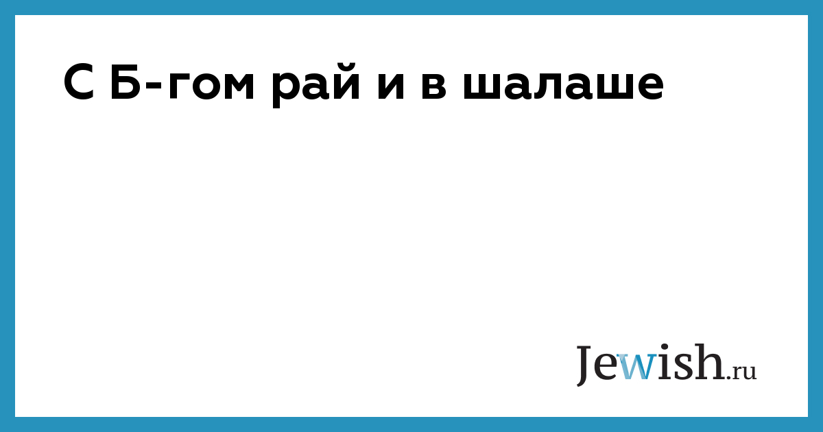 Кстати, о крышах… Согласно еврейскому закону, крыша над шалашом (сукой) должна быть сделана из растений. Зачем? А затем, что это заставляет нас ценить «Б-годанное» не меньше, чем рукотворное. Растительный слой крыши должен быть настолько плотным (точнее, настолько редким), чтобы Небеса оставались открытыми для всех сидящих в шалаше, поскольку лишь в Них — наша настоящая защита.